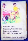 | How reading books from the past made learning new words fun. Now children can create their own Book Page Story. Print a story paragraph from home computer, print out paragraph, cut and paste paragraph to the Primary Book Page. Now all children can read their name in print when they decorate this cookie. |