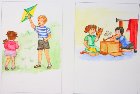 | Children will have fun writing a story about a boy and girl flying a kite. The second Primary Book Page illustrates a boy and girl having a puppet show. |